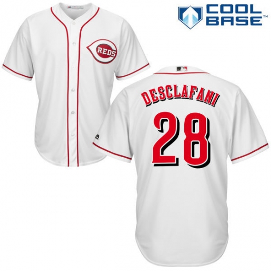 Home>MLB>Cincinnati Reds>Anthony DeSclafani>Youth Majestic Cincinnati Reds #28 Anthony DeSclafani Replica White Home Cool Base MLB Jersey