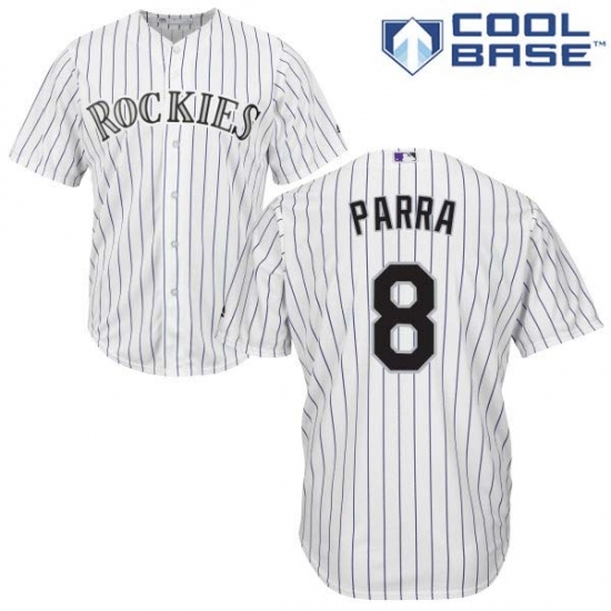Home>MLB>Colorado Rockies>Gerardo Parra>Youth Majestic Colorado Rockies #8 Gerardo Parra Replica White Home Cool Base MLB Jersey