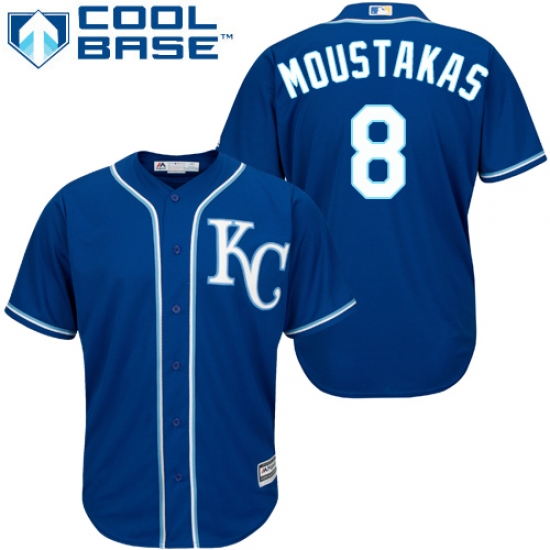 Home>MLB>Kansas City Royals>Mike Moustakas>Youth Majestic Kansas City Royals #8 Mike Moustakas Replica Blue Alternate 2 Cool Base MLB Jersey