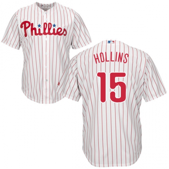 Home>MLB>Philadelphia Phillies>Dave Hollins>Youth Majestic Philadelphia Phillies #15 Dave Hollins Replica White/Red Strip Home Cool Base MLB Jersey