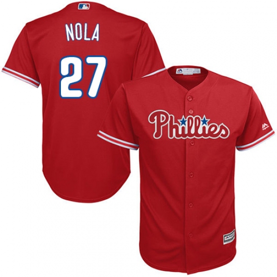Home>MLB>Philadelphia Phillies>Aaron Nola>Youth Majestic Philadelphia Phillies #27 Aaron Nola Replica Red Alternate Cool Base MLB Jersey