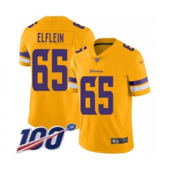 >Youth Minnesota Vikings #65 Pat Elflein Limited Gold Inverted Legend 100th Season Football Jersey
