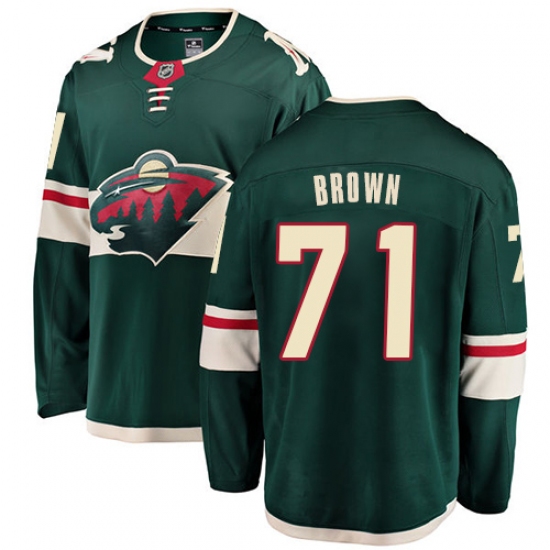 >Youth Minnesota Wild #71 J T Brown Authentic Green Home Fanatics Branded Breakaway NHL Jersey