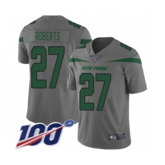 >Youth New York Jets #27 Darryl Roberts Limited Gray Inverted Legend 100th Season Football Jersey