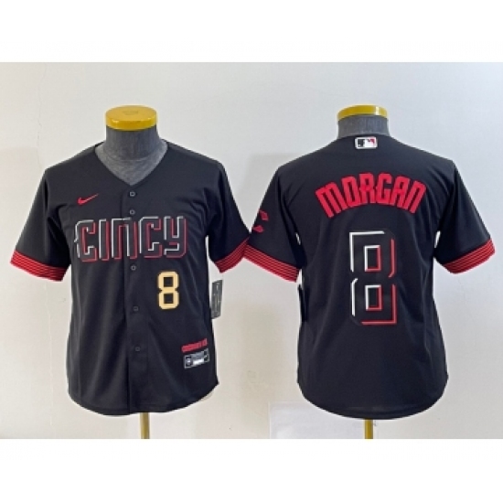 Youth Nike Cincinnati Reds #8 Joe Morgan Black 2023 City Connect Cool Base Stitched Jersey