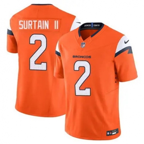 Men's Denver Broncos #2 Patrick Surtain II Nike Orange 2021 Draft First Round Pick Limited Jersey