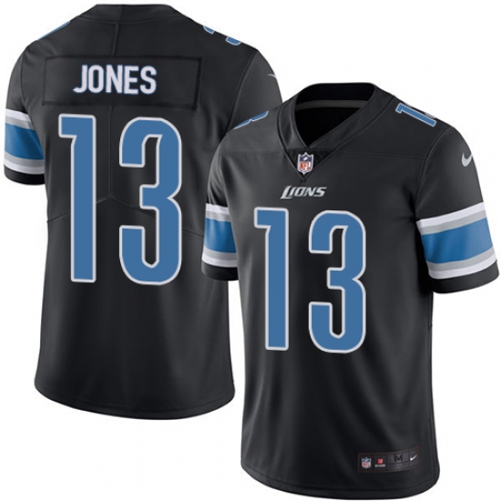 Home>NFL>Detroit Lions>T.J. Jones>Youth Nike Detroit Lions #13 T.J. Jones Limited Black Rush Vapor Untouchable NFL Jersey