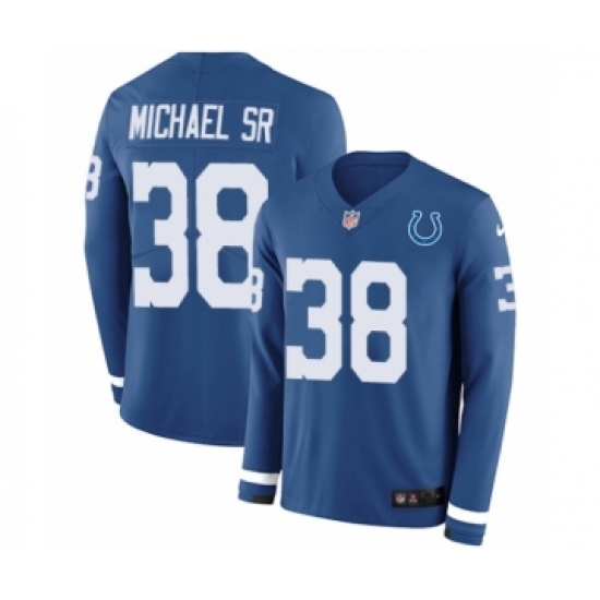 >Youth Nike Indianapolis Colts #38 Christine Michael Sr Limited Blue Therma Long Sleeve NFL Jersey