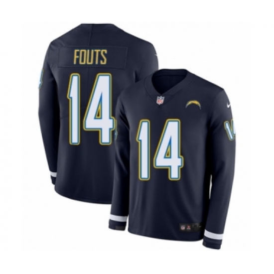 >Youth Nike Los Angeles Chargers #14 Dan Fouts Limited Navy Blue Therma Long Sleeve NFL Jersey