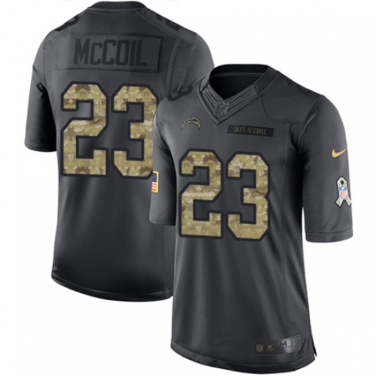 Home>NFL>Los Angeles Chargers>Dexter McCoil>Youth Nike Los Angeles Chargers #23 Dexter McCoil Limited Black 2016 Salute to Service NFL Jersey