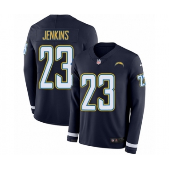 >Youth Nike Los Angeles Chargers #23 Rayshawn Jenkins Limited Navy Blue Therma Long Sleeve NFL Jersey