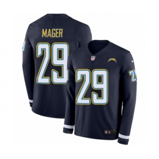 >Youth Nike Los Angeles Chargers #29 Craig Mager Limited Navy Blue Therma Long Sleeve NFL Jersey