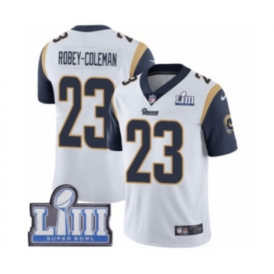 >Youth Nike Los Angeles Rams #23 Nickell Robey-Coleman White Vapor Untouchable Limited Player Super Bowl LIII Bound NFL Jersey