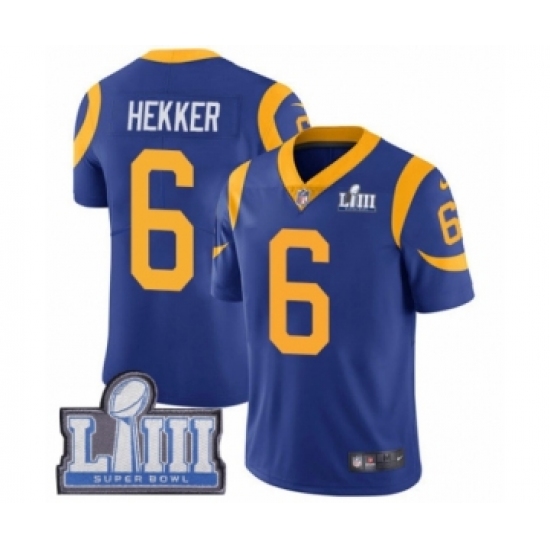 Men's Nike Los Angeles Rams #6 Johnny Hekker Royal Blue Alternate Vapor Untouchable Limited Player Super Bowl LIII Bound NFL Jersey