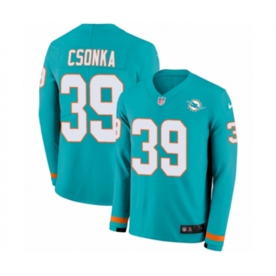 >Youth Nike Miami Dolphins #39 Larry Csonka Limited Aqua Therma Long Sleeve NFL Jersey