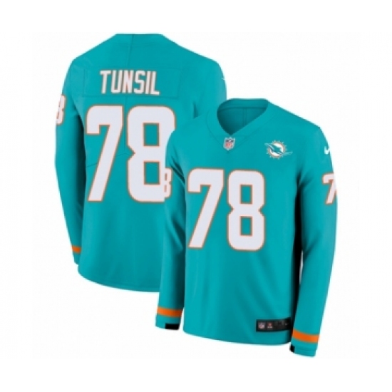 Youth Nike Miami Dolphins #78 Laremy Tunsil Limited Aqua Therma Long Sleeve NFL Jersey