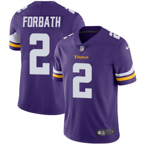 Home>NFL>Minnesota Vikings>Kai Forbath>Youth Nike Minnesota Vikings #2 Kai Forbath Purple Team Color Vapor Untouchable Limited Player NFL Jersey