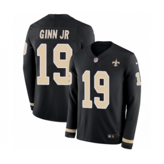 Youth Nike New Orleans Saints #19 Ted Ginn Jr Limited Black Therma Long Sleeve NFL Jersey
