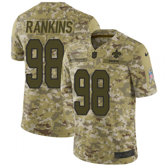 >Youth Nike New Orleans Saints #98 Sheldon Rankins Limited Camo 2018 Salute to Service NFL Jersey
