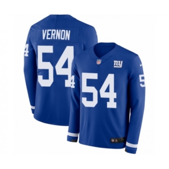 Youth Nike New York Giants #54 Olivier Vernon Limited Royal Blue Therma Long Sleeve NFL Jersey