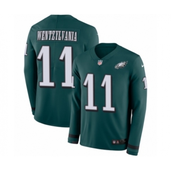 >Youth Nike Philadelphia Eagles #11 Carson Wentz Limited Green Therma Long Sleeve Wentzylvania NFL Jersey