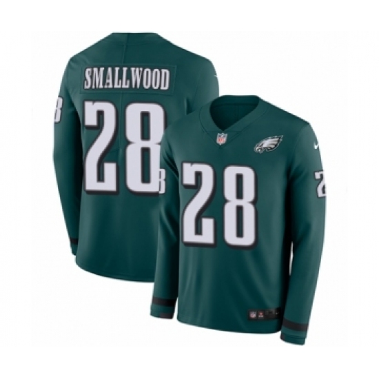 >Youth Nike Philadelphia Eagles #28 Wendell Smallwood Limited Green Therma Long Sleeve NFL Jersey