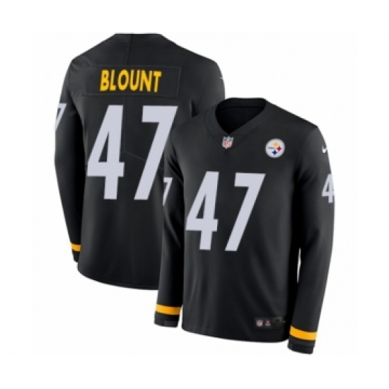 Youth Nike Pittsburgh Steelers #47 Mel Blount Limited Black Therma Long Sleeve NFL Jersey