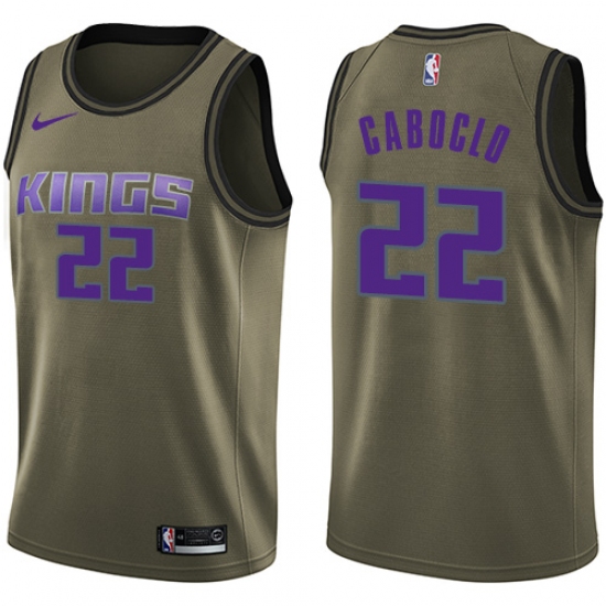 Home>NBA>Sacramento Kings>Bruno Caboclo>Youth Nike Sacramento Kings #22 Bruno Caboclo Swingman Green Salute to Service NBA Jersey