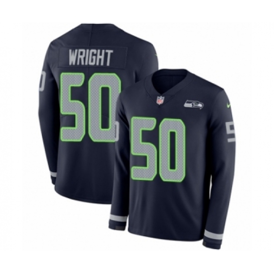 Youth Nike Seattle Seahawks #50 K.J. Wright Limited Navy Blue Therma Long Sleeve NFL Jersey