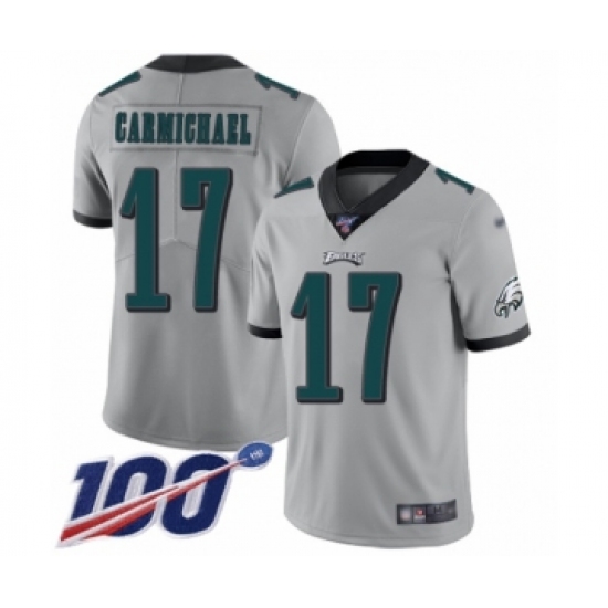 Men's Philadelphia Eagles #17 Harold Carmichael Limited Silver Inverted Legend 100th Season Football Jersey