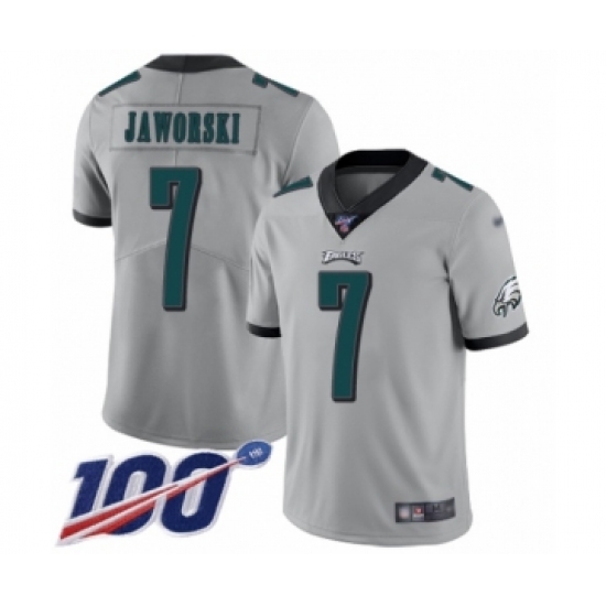 Men's Philadelphia Eagles #7 Ron Jaworski Limited Silver Inverted Legend 100th Season Football Jersey