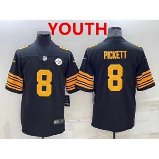 >Youth Pittsburgh Steelers #8 Kenny Pickett Black Color Rush Stitched NFL Nike Limited Jersey