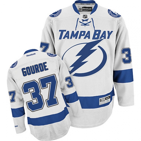 Home>NHL>Tampa Bay Lightning>Yanni Gourde>Youth Reebok Tampa Bay Lightning #37 Yanni Gourde Authentic White Away NHL Jersey
