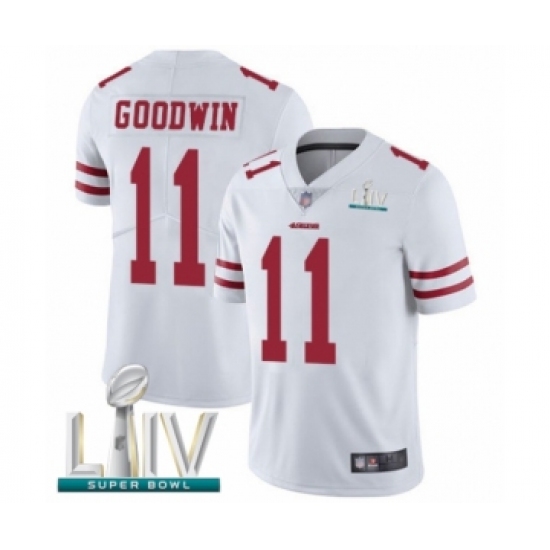 >Youth San Francisco 49ers #11 Marquise Goodwin White Vapor Untouchable Limited Player Super Bowl LIV Bound Football Jersey