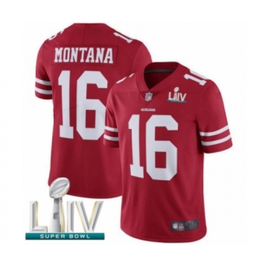 Youth San Francisco 49ers #16 Joe Montana Red Team Color Vapor Untouchable Limited Player Super Bowl LIV Bound Football Jersey