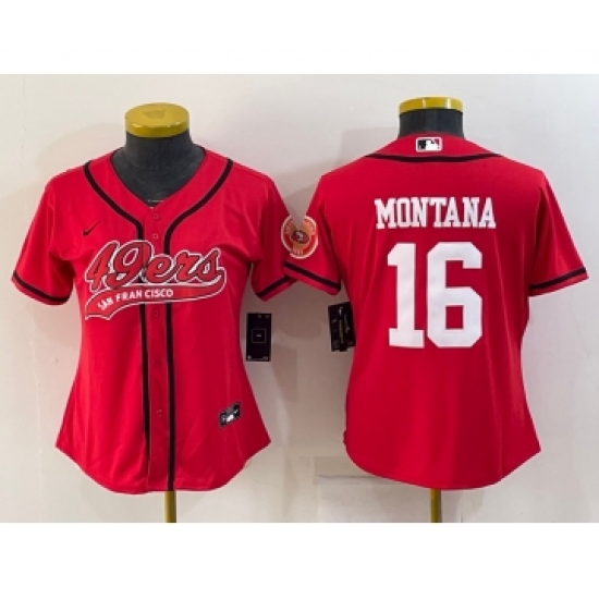 Youth San Francisco 49ers #16 Joe Montana Red With Patch Cool Base Stitched Baseball Jersey