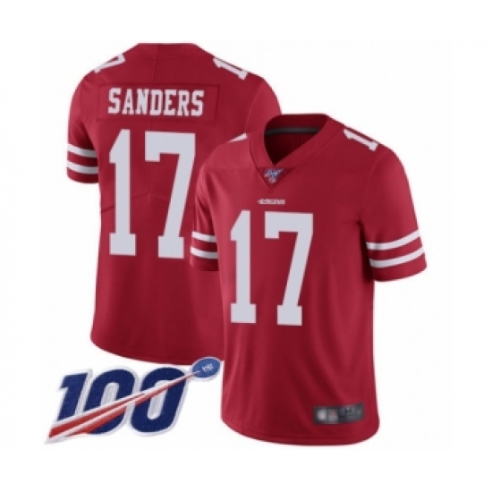 >Youth San Francisco 49ers #17 Emmanuel Sanders Red Team Color Vapor Untouchable Limited Player 100th Season Football Jersey