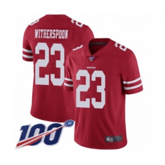 Youth San Francisco 49ers #23 Ahkello Witherspoon Red Team Color Vapor Untouchable Limited Player 100th Season Football Jersey
