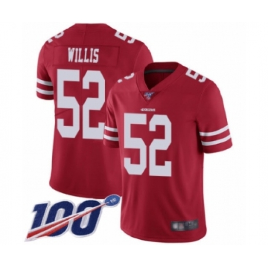 Youth San Francisco 49ers #52 Patrick Willis Red Team Color Vapor Untouchable Limited Player 100th Season Football Jersey