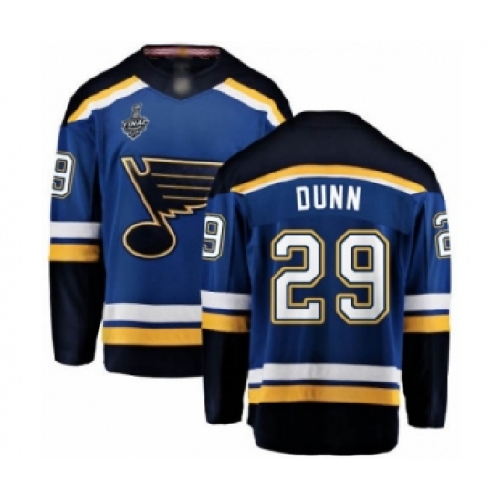 >Youth St. Louis Blues #29 Vince Dunn Fanatics Branded Royal Blue Home Breakaway 2019 Stanley Cup Final Bound Hockey Jersey