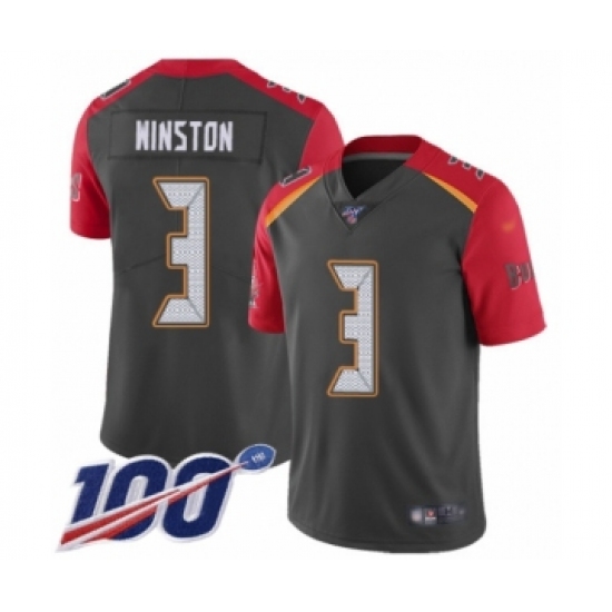 Youth Tampa Bay Buccaneers #3 Jameis Winston Limited Gray Inverted Legend 100th Season Football Jersey