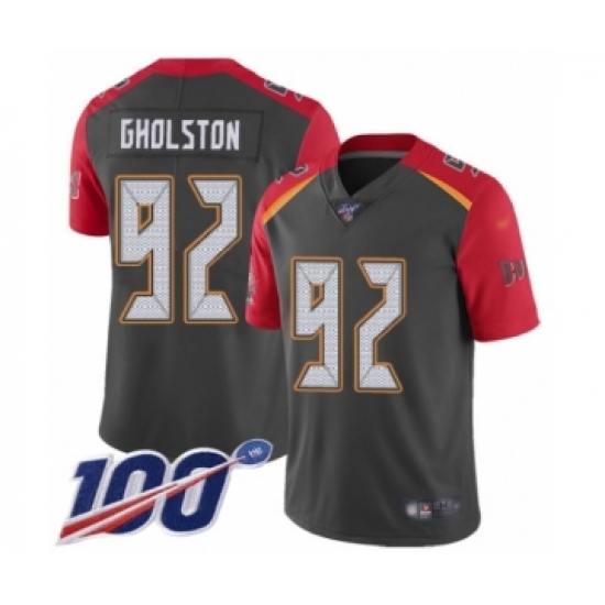 >Youth Tampa Bay Buccaneers #92 William Gholston Limited Gray Inverted Legend 100th Season Football Jersey
