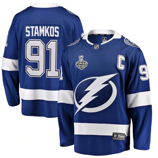 >Youth Tampa Bay Lightning #91 Steven Stamkos Fanatics Branded Blue 2020 Stanley Cup Final Bound Home Player Breakaway Jersey