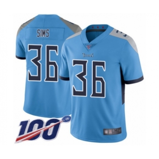 Youth Tennessee Titans #36 LeShaun Sims Light Blue Alternate Vapor Untouchable Limited Player 100th Season Football Jersey