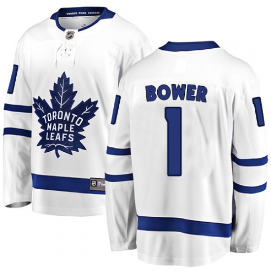 Home>NHL>Toronto Maple Leafs>Johnny Bower>Youth Toronto Maple Leafs #1 Johnny Bower Fanatics Branded White Away Breakaway NHL Jersey