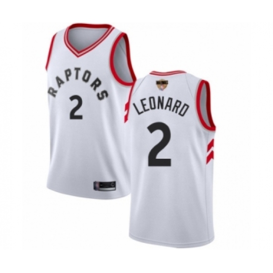 >Youth Toronto Raptors #2 Kawhi Leonard Swingman White 2019 Basketball Finals Bound Jersey - Association Edition