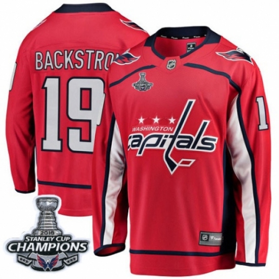 Youth Washington Capitals #19 Nicklas Backstrom Fanatics Branded Red Home Breakaway 2018 Stanley Cup Final Champions NHL Jersey