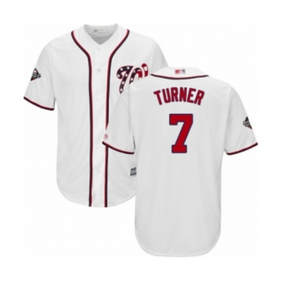 Youth Washington Nationals #7 Trea Turner Authentic White Home Cool Base 2019 World Series Bound Baseball Jersey